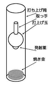単発の打ち上げ方は、筒に発射薬(黒色火薬)を入れ、花