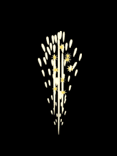 銀色の火の粉を約2m噴き出し、錦の火の粉が「バチバチ」咲きます。 薬量約8.2g |