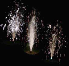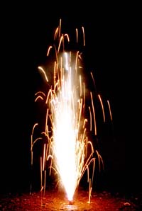 | 現象説明 | ドラゴンの燃焼時間を長くしたもので、10秒くらい噴き続けます。銀色の火の粉が1.5mほど舞い上がります。 薬量約7.5g |