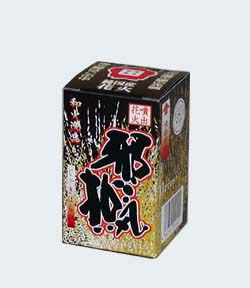 | 現象説明 | 上蓋のベロのところで「吉凶」の占いが出来ます。しかも邪気を追い払ってくれそうな2度変化の噴出花火です。 初め、銀色の小さな火花が咲き、その後金色の火の粉が高さ4.0mほど勢いよく噴き出す。 この花火でいつでもどこでも邪気を追い払いましょう。 薬量約13.5g |