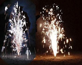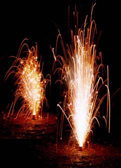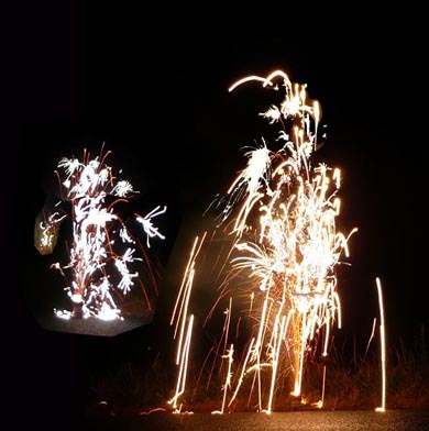 ドラゴンエースの後継商品。新規格。 初めパチパチと花が咲き、その後銀色の火の粉が高さ2.5m位噴き上がります。 薬量約10.5g | ||||