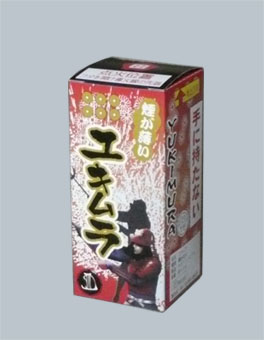 国産おもちゃ花火としては最高に噴き上がる噴出花火です。 初め、白色の火花が咲きながら舞い、その後、錦色の火の粉が勢いよく最高5mほど噴き出します。 薬量約13g | ||||