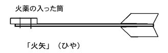 (のろし)」、矢の先に火薬の筒をつけた「火矢(ひや)」(火箭=かぜん)