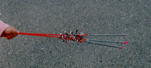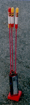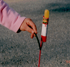 ![]() | まとめて火を着けるとその中の一つが横に飛ぶ可能性があります。また一度に発射されると飛んでいったロケットの行方がわからず当たってしまう可能性もあります。 |