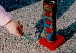 ![]() | 点火は一つずつ行ってください。中の一つが破裂をしてとなりの花火を倒す可能性もありますし、かためると一つの時よりも高く上がって大変危険です。 |